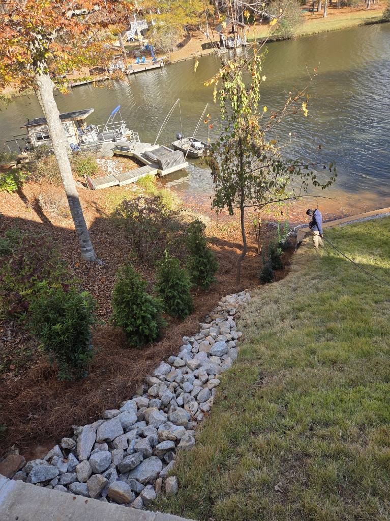 "Installed a pond feature by Carolina Professional Landscapes. It’s a charming addition, quite soothing. They were efficient and clear about the process."